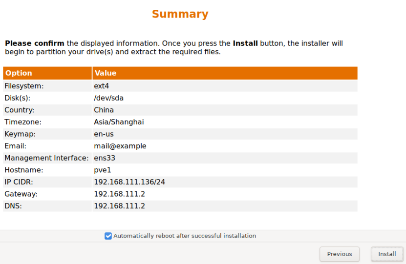 pve-2和pve-3的安装过程与pve-1类似,实验时管理IP地址根据实际网络环境配置,不要照抄文档中的IP地址。