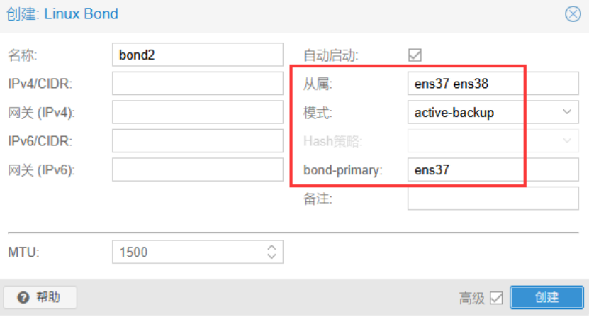 创建Linux Bond:bond2