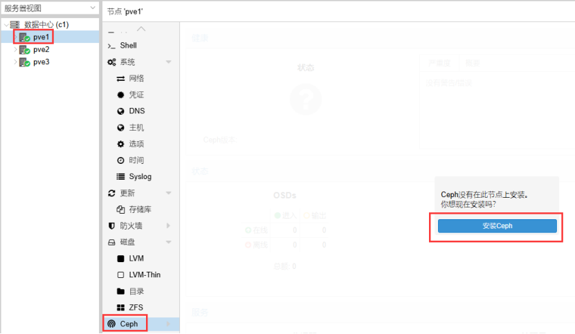 选择节点3,选择Ceph-》安装Ceph。