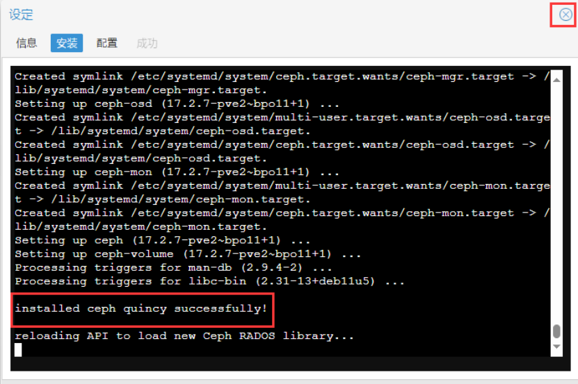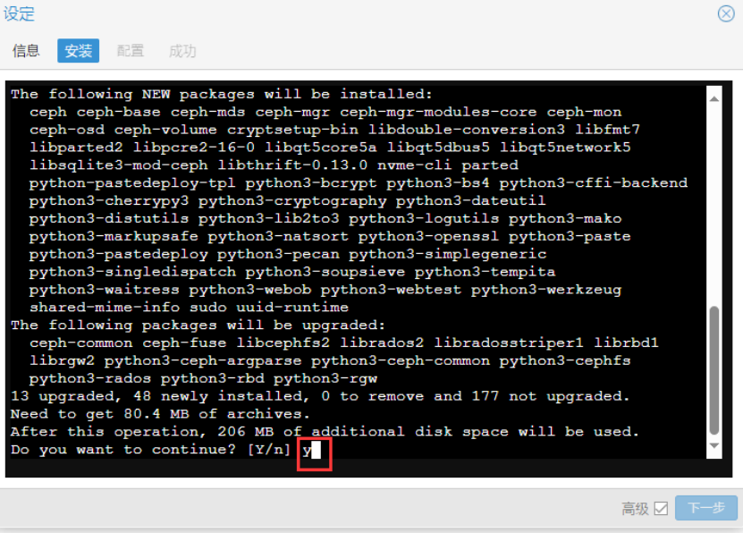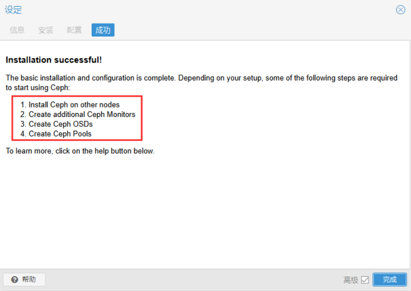 Ceph安装成功后,继续下一步。
