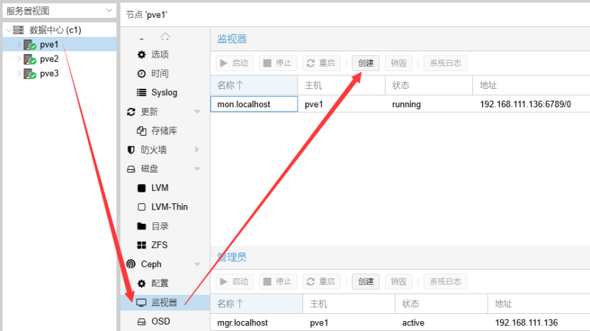 3个节点都安装ceph后,需要创建Ceph 监视器、OSD磁盘、Ceph 存储池。