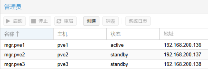 Ceph管理员和Ceph监视器的创建方式类似,继续添加节点2和节点3,一共3个管理员。其中,一个活动,两个备用。