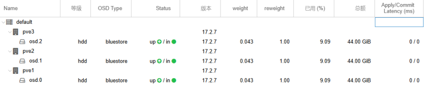 创建OSD完成后,集群一共有3个OSD磁盘