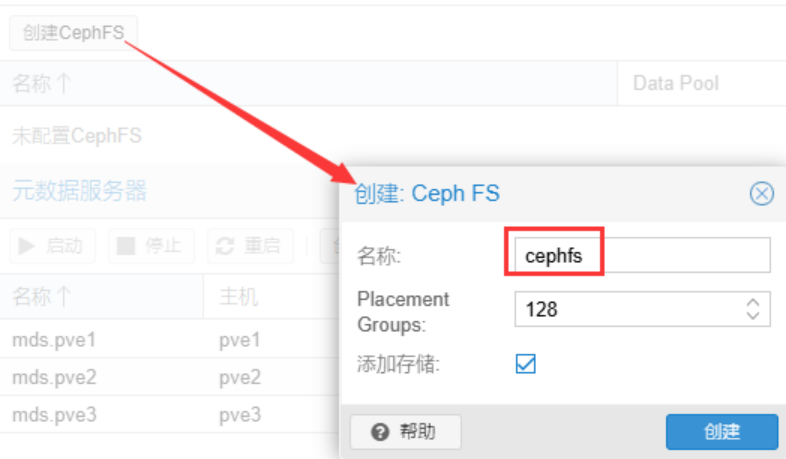 创建CephFS,名称自定义