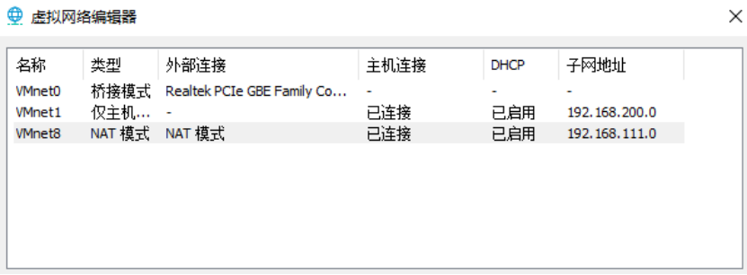 NAT网络VMnet8 | 192.168.111.0/24 |