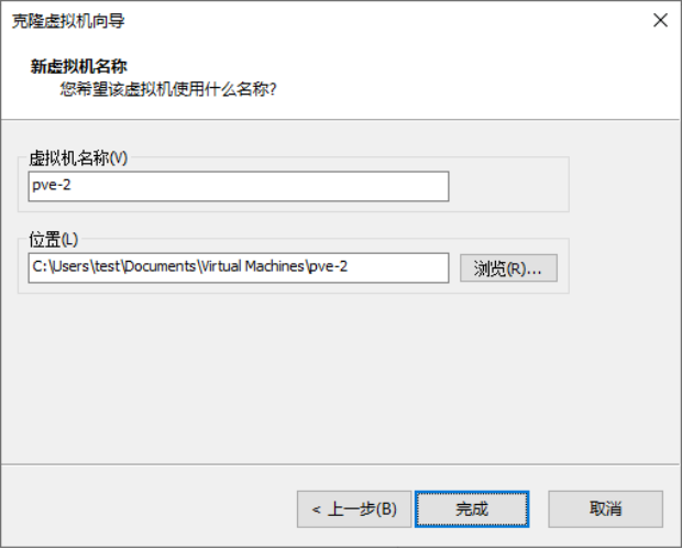 pve-1创建后,可以通过克隆的方式依次快速生成虚拟机pve-2和pve-3。克隆方式选择“完整克隆”。
