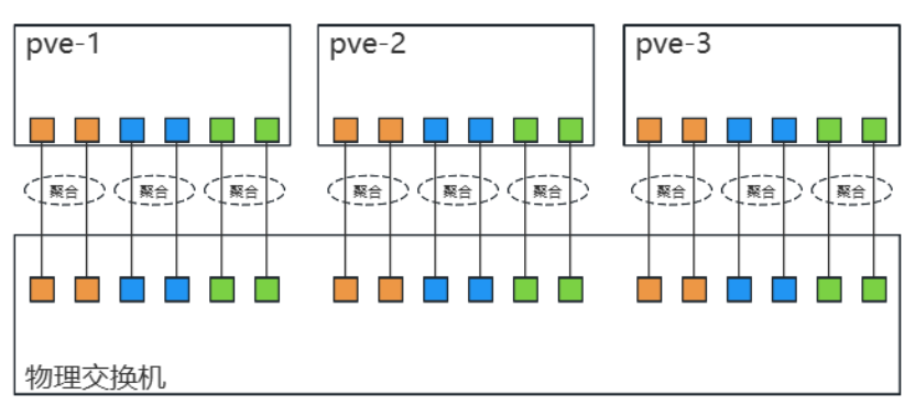 实验3实现了网络分流,但单个网卡出现故障时,会导致对应流量中断。在生产环境中,通常使用链路聚合等技术预防网络中的单点故障。考虑到网络冗余,服务器的组网方式如图所示。